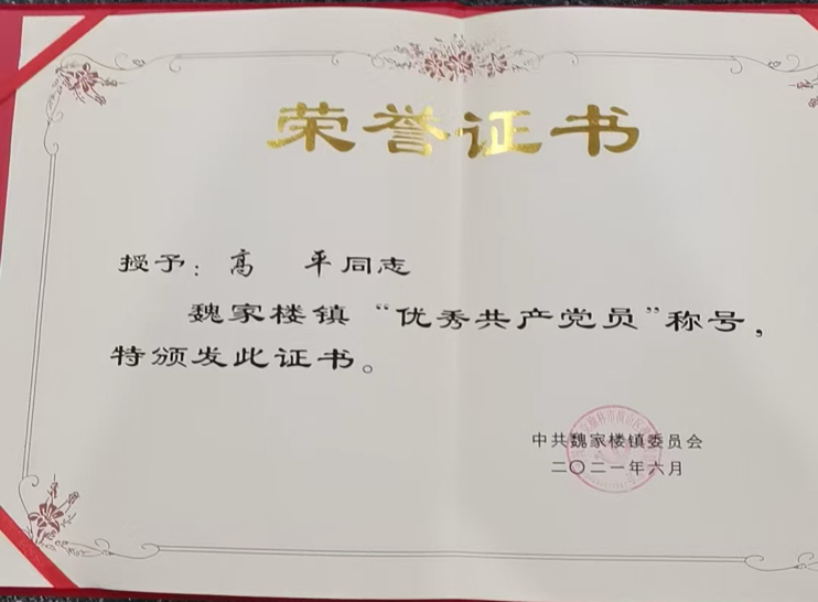 我的爷爷,自小在这样的家族文化熏陶下长大,“为人民服务”的信念早早在他心中扎下了根。初入社会时,他看着家乡不少人因缺乏就业机会而愁眉不展,便暗下决心要为家乡做点实事。经过反复考察和筹备,他顶着多重压力,创办了村里第一家砖厂。砖厂不仅解决了村民的就业难题,还为家乡的房屋建设提供了优质建材,带动了周边群众共同致富。他的付出被大家看在眼里、记在心里,2004年5月1日,爷爷被横山区政府授予“劳动模范”称号,这既是对他个人的肯定,更是对他心系群众的褒奖。2013年,爷爷当选为施阳台村支部书记后,更是将“为民服务”的初心落到实处:他带头修缮村里的土路,让泥泞小道变成平整的水泥路;组织技能培训,帮助村民掌握更多致富本领……凭借着扎实的工作和无私的奉献,爷爷又先后荣获“横山区优秀共产党员”“横山区劳动模范”等称号,成为了村民心中的“主心骨”。